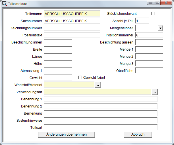 .... und das dazu gehörende Dialogfenster Teileattribute