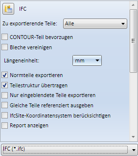 Mit dieser Funktion exportieren Sie HiCAD-Konstruktionen in das IFC-Format oder als gepackte IFC-Datei in das Format IFCZIP. Wählen Sie dazu den gewünschten Dateityp.