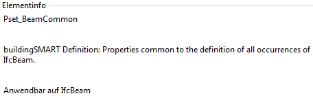 Die Anwendbarkeit von Mappings auf IFC-Typen wird bei den Standard-IFC-PropertySets genauso wie bei den benutzerdefinierten beachtet. "Pset-BeamCommon"-Eigenschaften z.B. würden entsprechend nur bei Stahlbauteilen ausgegeben, sofern HiCAD-Attributen zugeordnet.