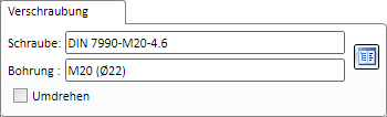 Soll die Richtung der Verschraubung umgedreht werden, dann aktivieren Sie die Checkbox Umdrehen.