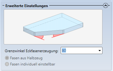 Zudem können Sie hier festlegen, ob die Fasen aus Halbzeug verwendet werden sollen oder Sie lieber die Fasen individuell einstellen möchten.