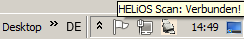 Wenn HeliosScan auf einem Rechner erstmalig gestartet wird, erfolgt ggf. die Auswahl des Lizenzmoduls und die Anmeldung in HELiOS. In der Taskleiste von Windows erscheint dann das Icon vom HeliosScan...