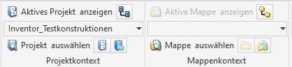 Im HELiOS Menü für Einzelteile, Baugruppen oder Zeichnungen finden Sie in den Funktionsgruppen Projektkontext und Mappenkontext Menüpunkte zum Arbeiten in Projekten und Mappen: