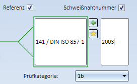 fest. Die Textparameter für die Schweißnahtnummern und die Prüfkategorie können dabei unabhängig von den anderen Texten festgelegt werden.