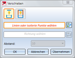 Mit dieser Funktion verschieben Sie Linienelemente oder isolierte Punkte einer Skizze. Dazu wird das Dialogfenster Verschieben angezeigt: