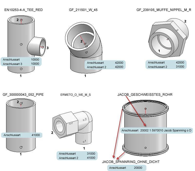 Die letzte Ziffer (x) der Kennzahl gibt Aufschluss über die Bedeutung des Zusatzes: 0 =kein Zusatz 2 = Der Zusatz besteht aus Anschlussnummer, Bauteilart-Kennung und Bauteilnorm des anzuschließenden Bauteils Die vorangestellte Anschlussnummer gibt an, mit welchem Anschluss das Zusatzbauteil an den aktuellen Anschluss anzufügen ist.
