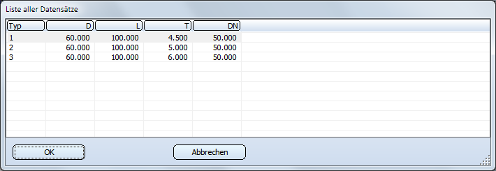 - Legen Sie nun alle gewünschten Ausprägungen fest, indem Sie entsprechende Datensätze anlegen. Beachten Sie ggf. erforderliche Umrechnungen, wenn Sie anhand von Datenblättern arbeiten.