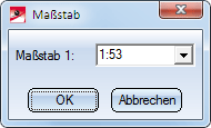 Sie können den Maßstab hier noch korrigieren. Wird das Fenster mit OK verlassen, dann wird der Maßstab der Konstruktion vor Einfügen des Zeichnungsrahmens angepasst. Wird das Fenster mit Abbrechen verlassen, dann wird der bisherige Maßstab weiterverwendet.