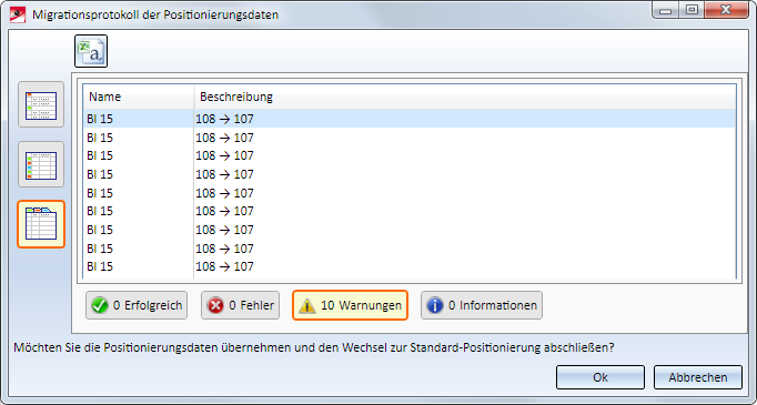 Mit einem Klick auf OK wird die Konvertierung gestartet. Anschließend werden in einem Migrationsprotokoll Warnungen, aufgetretene Fehler etc. angezeigt.