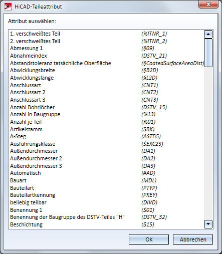 Wählen Sie das gewünschte Attribut aus, und verlassen Sie das Fenster mit OK.