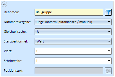 Hier können Sie wählen, ob die Nummernvergabe für die aktuelle Teilegruppe regelkonform oder unreglementiert erfolgen soll.