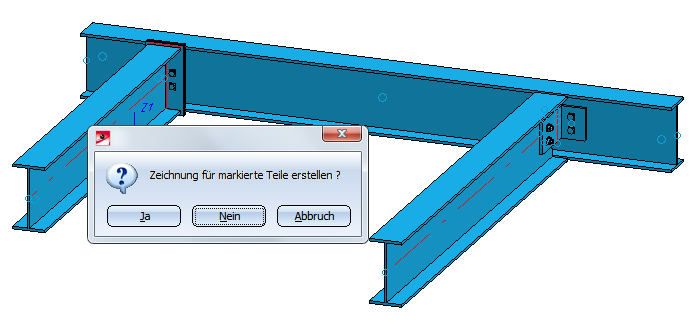 Als nächstes wollen wir für die gesamte Konstruktion die Baugruppen- und Einzelteilzeichnungen generieren. Dies ist die ISD-seitige Voreinstellung. Daher kann die Generierung der Zeichnungen automatisch erfolgen.