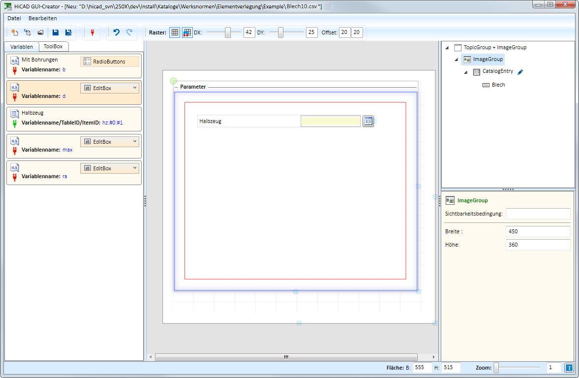 Nun ziehen wir die Variablen d, max, und ra als EditBox in die ImageGroup, z. B.