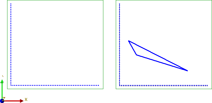 zwei Linien wie abgebildet - eine parallel zur y-Achse, die andere parallel zur x-Achse. Diese beiden Linien benötigen wir als Hilfsgeometrie für die Parametrisierung. Sie symbolisieren praktisch das Koordinatensystem für die Eckpunkte des noch zu zeichnenden Dreiecks.