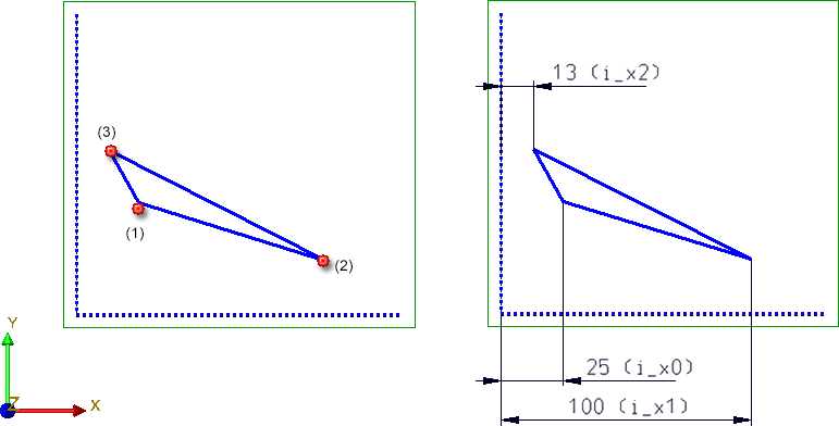 Für das Kantblech im Beispiel bedeutet dies, dass dem ersten Punkt die Variablen (i_x0,i_y0), dem zweiten Punkt die Variablen (i_x1,i_y1) und dem dritten Punkt die Variablen (i_x2,i_y2) zugewiesen werden müssen.