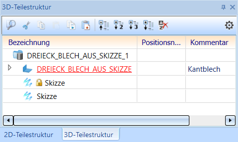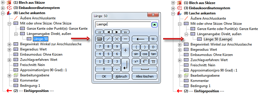 Der erste Schritt ist die Konstruktion des entsprechenden Teils. In unserem Beispiel heißt das, Erzeugen und Parametrisieren der Skizze, Ableitung des Kantbleches und Ankanten der Lasche.