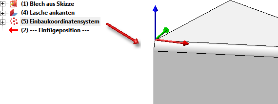 Das Einbau-Koordinatensystem wird in das Feature-Protokoll eingetragen.