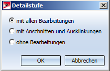 Die Option mit allen Bearbeitungen auszuwählen kann z.B. dann Sinn machen, wenn Ausklinkungen über Bohrungen beschrieben worden sind. U.U. ist sie etwas Performance-intensiver, als nur Anschnitte und Ausklinkungen oder keine Bearbeitungen zu berücksichtigen.