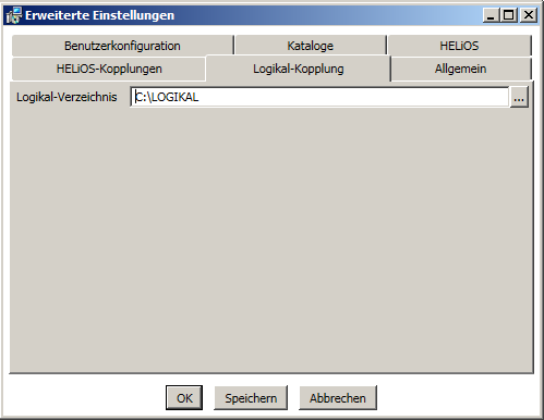 Einstellungen > Weitere Verzeichnisse vorgenommen werden, wo der LogiKal-Pfad durch Doppelklick in das entsprechende Feld und Auswählen des Pfads geändert werden kann.
