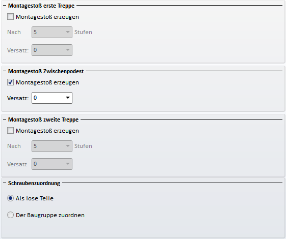 Schrauben können als lose Teile eingebaut werden oder der Baugruppe der jeweiligen Stufe zugeordnet werden. Aktivieren Sie die gewünschte Option. Beim Einbau als lose Teile werden die Schraubverbindungen der Baugruppe Zubehörteile zugeordnet.