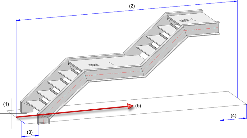 (1) Identifizierte Skizze, (2) Skizzenlänge, (3) Abstand am Treppenanfang, (4) Abstand am Treppenende, (5) Laufrichtung