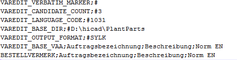 Zusätzlich kann die Datei noch weitere Parameter enthalten, die den Ablauf der Variantenzuordnung steuern. Diese werden über Attribute beschrieben, die mit dem Präfix VAREDIT_ beginnen.