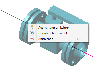 Hierbei werden die Bauteile mit der Anschlussrichtung des Anfasspunktes auf den Leitkantenzug gesetzt. Die Einbaurichtung kann dabei über den Eintrag Ausrichtung umkehren im Kontextmenü gewechselt werden.