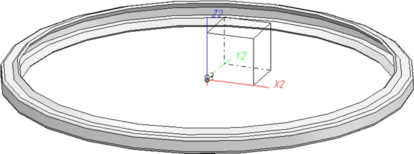 Die Abbildung zeigt die Lage, die er bei der Konstruktion haben muss. Der Passpunkt liegt im Ursprung des Weltkoordinatensystem, die Mittelachse verläuft in Richtung der Z-Achse.