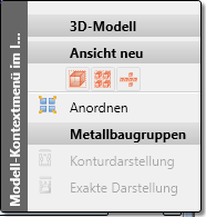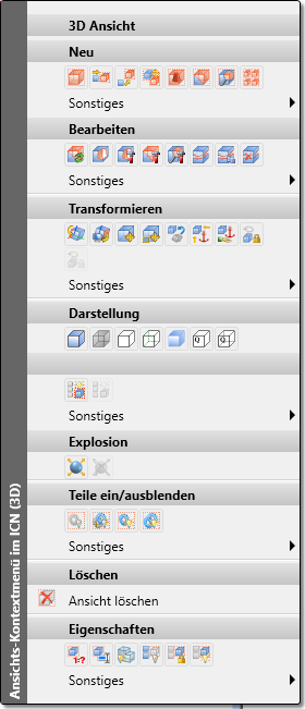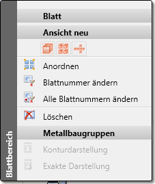 Zur Bearbeitung von Modell-/ Blattbereichen oder Ansichten können Sie auch Funktionen der entsprechenden Kontextmenüs nutzen. Dazu klicken Sie mit der rechten Maustaste auf den entsprechenden ICN-Eintrag.