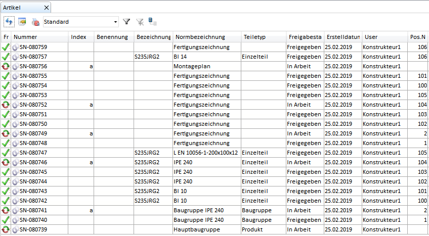 Die Zeichnungen werden aktualisiert und erhalten im Schriftfeld wieder die Kennzeichnung in Arbeit.