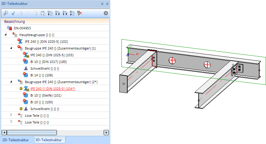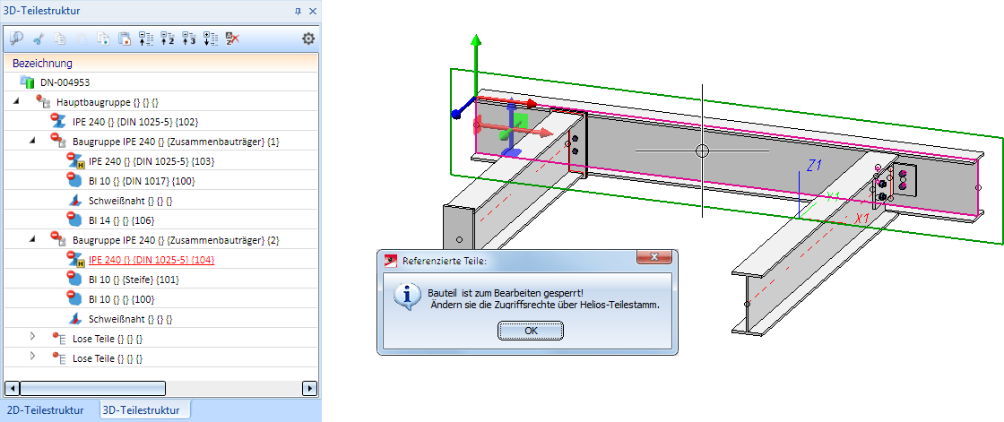 Die Fertigungs- und Montagezeichnungen aus unserem Beispiel sind freigegeben. Aber wir wollen nun nachträglich Bohrungen in das für Bearbeitungen gesperrte mittlere Profil einbauen.