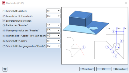 Möchten Sie die Blechecke ohne "Puzzle" einbauen, dann deaktivieren Sie die Option Eckverbindung erstellen.