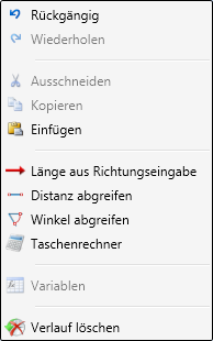 - Bei der Eingabe von Abständen oder Winkeln bietet das Kontextmenü, dass Sie per Rechtsklick auf das Eingabefeld aufrufen können, erweiterte Möglichkeiten: