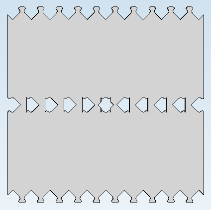 Beispiel sei eine einfache Platte mit einer Ausnehmung. Die Ausnehmung soll linear entlang der oberen Kante und rotatorisch um den Mittelpunkt der Platte wiederholt werden.