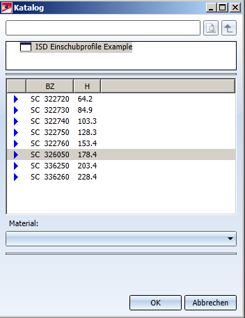 über den Katalog auswählen, sowie die Länge, und im Falle des Bleches auch die Höhe im Eingabefeld ändern (wenn Sie einen Flachstahl aus dem Katalog auswählen, entfällt das Auswahlfeld Höhe, da diese bereits für das Teil festgelegt ist).