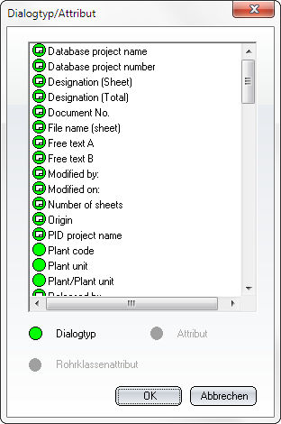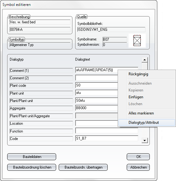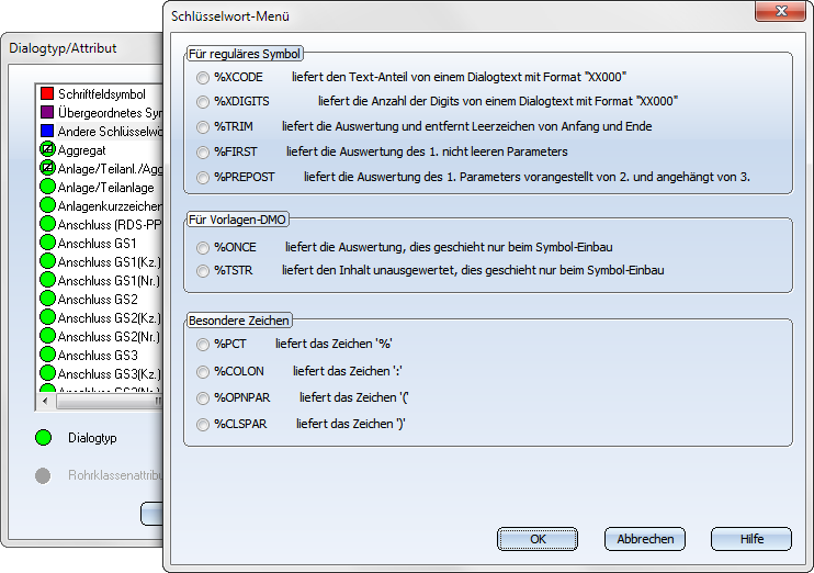 Nach Wahl des Schlüsselwortes können Sie im erscheinenden Dialog das Kontextmenü Dialogtyp/Attribut aufrufen.