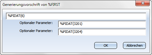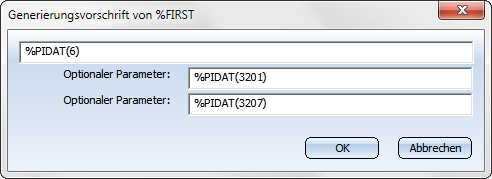Bestätigen Sie mit OK, dann wird die Vorschrift (z.B. %PIDAT(9)) angezeigt.
