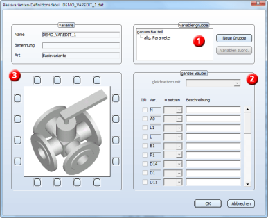 Die Frage Wollen Sie Variante in eine Basisvariante umwandeln beantworten Sie mit Ja. Anschließend wird ein Dialogfenster mit den erforderlichen Bearbeitungshilfsmitteln angezeigt.