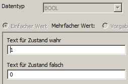 BOOL-Attribute oder Boolesche Variablen beschreiben einen Wert als "1" (wahr/ true) oder "0" (falsch/ false). Auch Boole-Attribute können Sie mit dem Masken-Editor in die Oberfläche des HELiOS Desktop einbauen. Den exakten Text der Werte eines benutzerdefinierten Boole-Attributs können Sie in der Attributverwaltung selbst bestimmen: