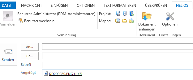 Die entsprechende Datei wird daraufhin der E-Mail angehangen. Dabei wird die Datei mit dem internen HELIOS-Dateiname benannt (hinterlegt im Datenbankattribut "HEL_Dateiname").