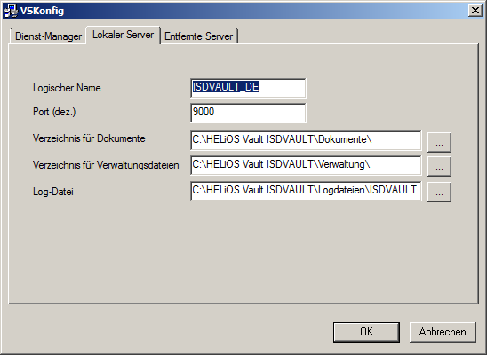 Im Tab Lokaler Server sehen Sie die Einstellungen, die Sie bei der Installation des lokalen Vaults angegeben haben. Falls notwendig, lassen sich diese an dieser Stelle nachträglich ändern.