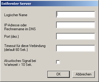 Beim Hinzufügen eines entfernten Servers müssen im aufgerufenen Eingabefenster folgende Felder ausgefüllt werden: