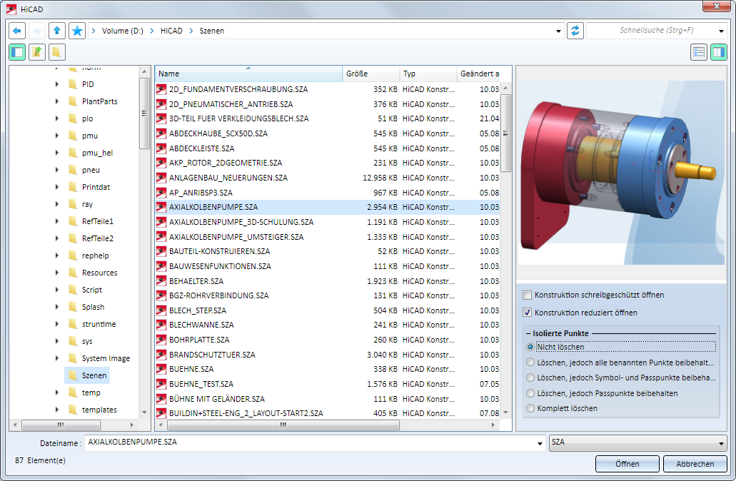 Ob die Datenreduktion verwendet wird, hängt von den Optionen beim Öffnen der Konstruktion ab.