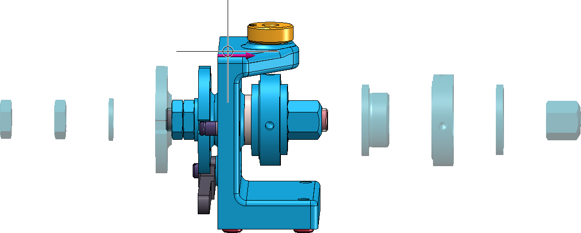 Mit dieser Funktion lassen sich im Modus Explosion Verschiebungen mit Richtungsautomatik definieren. Wie bei der Transformation Verschiebung werden auch hier mehrere Teile gleichzeitig linear verschoben. Im Unterschied werden diese Teile hier aber nicht mit der gleichen Entfernung verschoben, sondern - bezogen auf ein bestimmtes Teil (das sogenannte Fixteil) - entlang der gewählten Richtung verteilt. Dadurch ist es möglich, mehrere Teile in einem Schritt gleichzeitig in positiver und negativer Richtung zu verschieben - in Abhängigkeit von der Lage der Teile zum gewählten Fixteil.