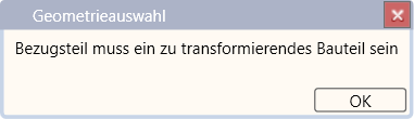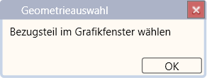 - Das Bezugsteil muss im Grafikfenster der Konstruktion ausgewählt werden. Beim Versuch das Teil im ICN auszuwählen erfolgt eine entsprechende Meldung.