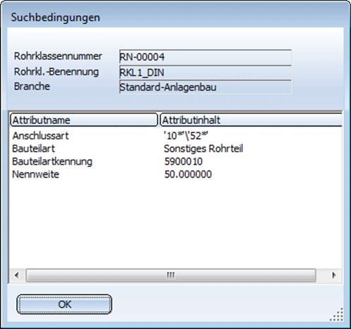 Über die Klassifizierung, die der gewählten Bauteilart zugeordnet ist, werden in der Bauteildatenquelle (Datenbank oder Katalog) den Vorgaben entsprechende Bauteile gesucht und in einer Ergebnisliste aufgelistet. Der Umfang der Ergebnisliste hängt u. a. von der jeweils wirksamen Vorselektierung ab.