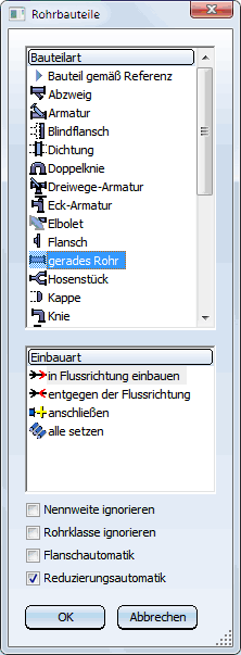- Notwendige Reduzierungen werden bei Rohrbauteilen automatisch eingebaut, wenn folgende Voraussetzungen erfüllt sind: