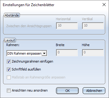 Darüber hinaus können Sie für DIN-Formate festlegen, dass automatisch ein entsprechender Zeichnungsrahmen eingefügt und das Schriftfeld ausgefüllt wird.
