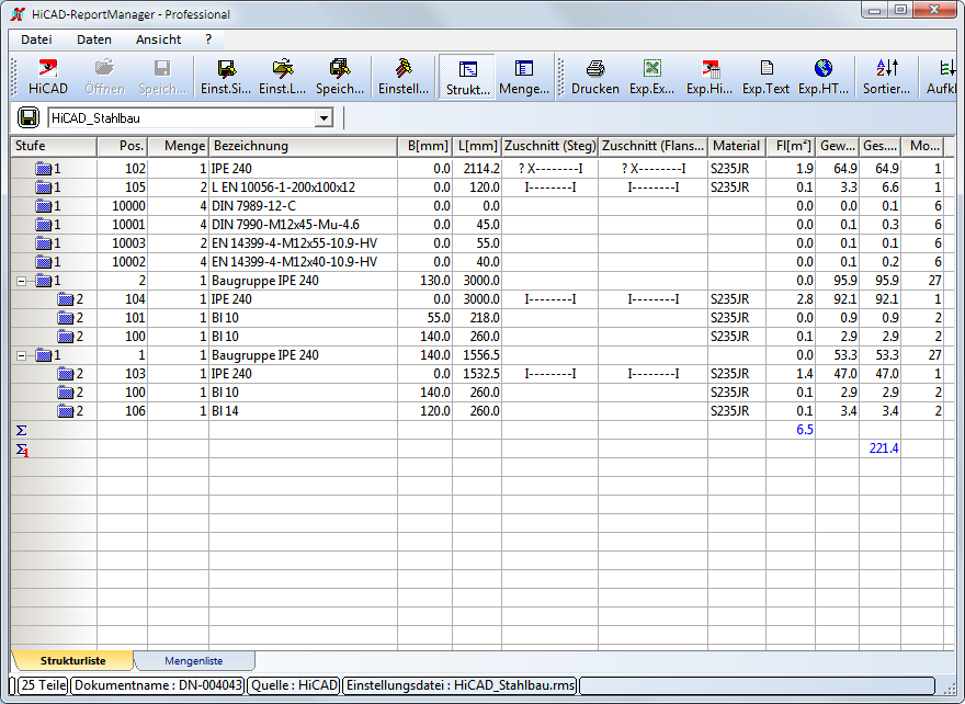 . Im Dialogfenster Stückliste wählen Sie dann die gewünschten Ausgabeoptionen. Mit einem Klick auf Schaltfläche Weiter wird die Stücklistengenerierung gestartet.