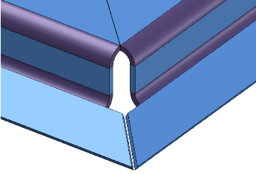 Mit der Designvariante Gehrungsschnitt schneiden Sie Bleche, Biegezone und Laschen in einem Arbeitsschritt auf Gehrung. Dabei wird die Biegezone entweder angeschnitten oder angepasst.